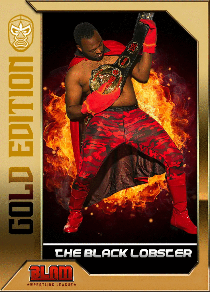 BLAM features a colorful lineup of characters — from Bishop Backslide, a fake preacher managing rival gang wrestlers, to the Wing Dust Winos, The Jaggernaut Giggolos, and the outlandish champion Black Lobster, whose finishing move is the “Lobster Chop.” White even makes a cameo as a referee.