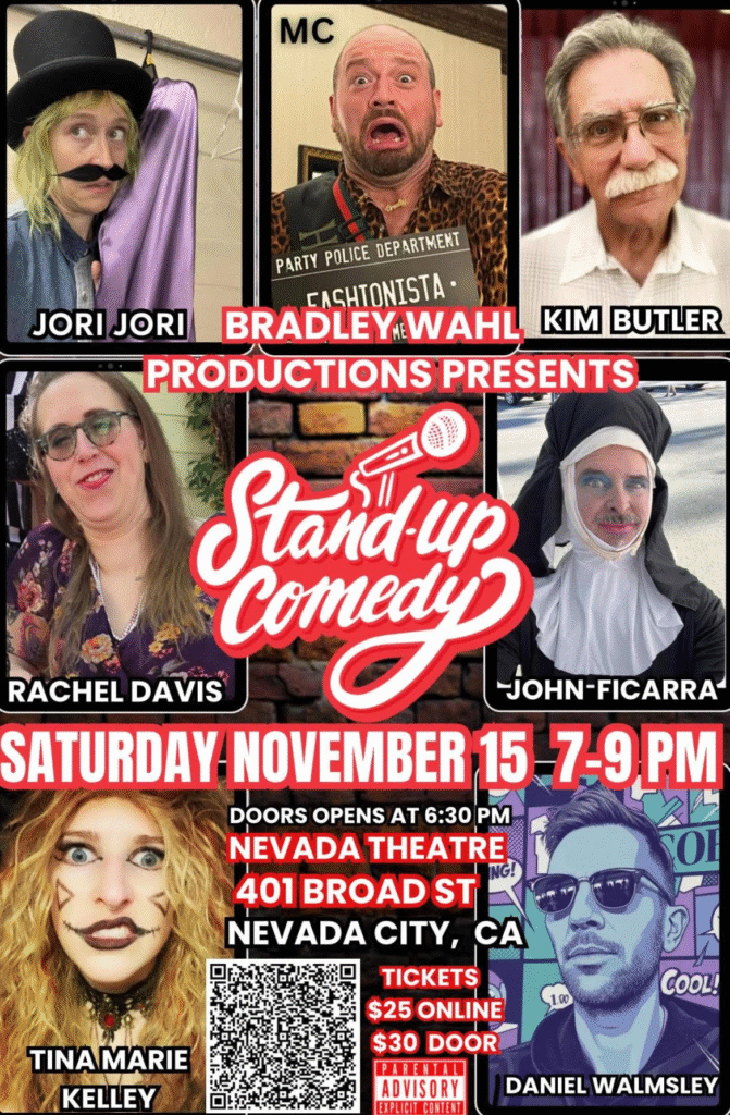Whether you’re a long-time comedy fan or just looking for a fun night out with friends, this event aims to deliver two full hours of laughter, community, and unforgettable performances. With a diverse group of comedians and a host who knows how to keep the momentum going, Stand-Up Comedy Night is shaping up to be one of the most entertaining evenings on Nevada City’s calendar.