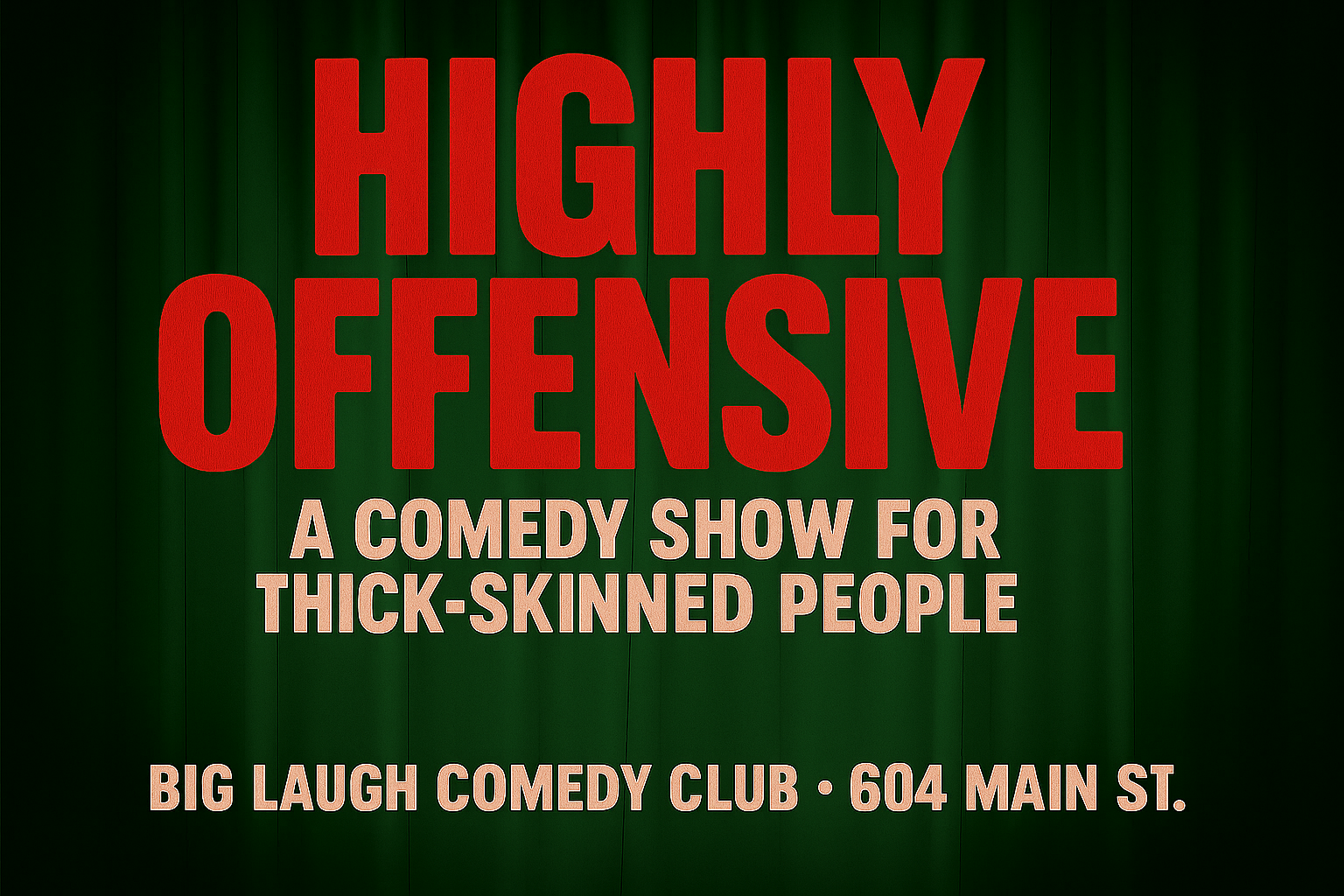 If you’re tired of watered-down humor and “safe spaces,” Fort Worth has something that might hit the spot — Highly Offensive: A Comedy Show for Thick-Skinned People. This bold and unapologetic stand-up showcase promises 90 minutes of unfiltered, boundary-pushing jokes that will either leave you howling or clutching your pearls. In short, it’s not your grandma’s comedy night.