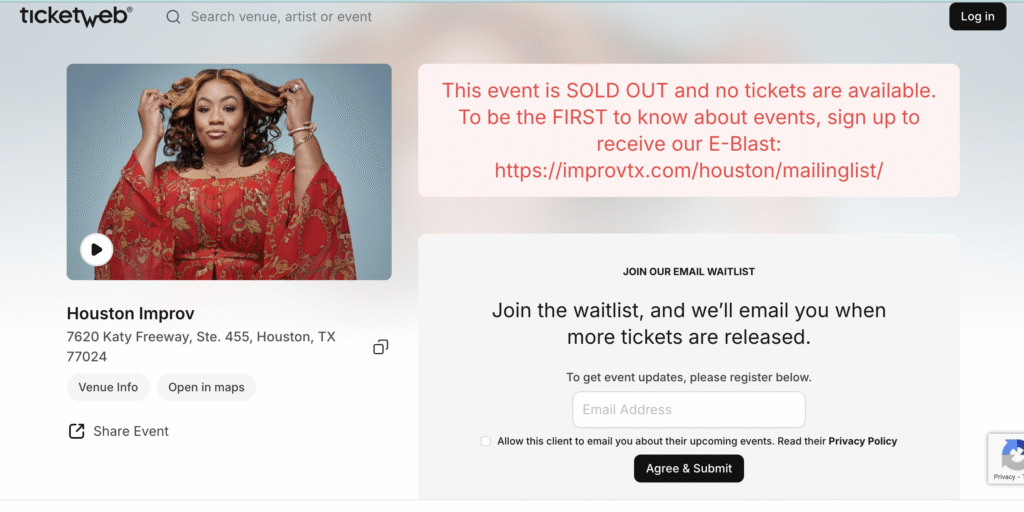 The Houston Improv event gives fans the chance to catch Ms Pat live in a more intimate comedy-club setting, rather than through the sitcom medium. It’s a rare chance for the Houston audience to experience her stage presence and storytelling up close. The venue provides free parking in the adjacent shopping-center lot, and their contact number is 713-333-8800 for any venue-specific questions.